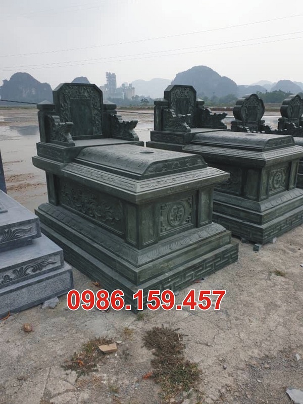 Các loại đá tự nhiên thường được lựa chọn để chế tác mộ bao gồm đá xanh đen Ninh Bình, đá xanh rêu, đá vàng, và đá trắng.